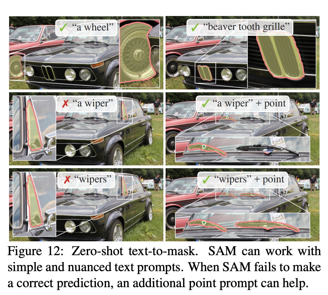 - 예를 들어서 셔츠 vs 사람 이라는 프롬프트에 대해서 SAM은 두 가지 가능한 해석을 모두 고려하여 각각 다른 해석을 반영하는 mask를 만들 수 있음. 하나의 mask는 shirt만을 표시하는 mask, 또 다른 mask는 사람을 포함하는 mask. 이런 식으로 다른 mask를 만들 수 있음.